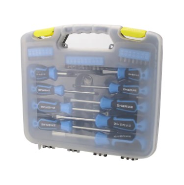 Un conjunto de destornilladores multifunción es un conjunto completo de herramientas que combina una variedad de bits de destornillador y estructuras auxiliares. Por lo general, contiene una variedad de modelos y especificaciones de bits de destornillador (cruzado, plano, hexagonal, estrella, ciruela, tipo Y, etc.), y está equipado con un mango desmontable, varilla de extensión, junta universal e incluso algunos conjuntos de alta gama también tienen componentes adicionales como la unidad eléctrica, la función de succión magnética y las selecciones desapeales.